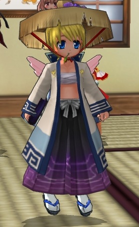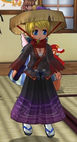 >> フロンWRXさまあまりのにあわなさに、これはもうネタにするしかないと(;^_^Aやっぱにあわないよねぇ・・>> プラス@しゃぼれよ隊さまなにやら名前が変わってるけど・・ゆうちゃんさんか( ;^^)大丈夫、三度笠はずせばすぐにツインテに戻るもんね(*゜▽゜)そしてこんなアイテムは倉庫にしまってしまおう(*・・)σ >> 蒼翼さま書生さんセットはもってないなぁ普段着でつけてみたらあまりのミスマッチさににあいそうなの探す気にもなれなかったのよ(^_^;)>> 便利屋 黒猫さまふむふむ、半纏なら季節イベでもらったやつもってたナちと試してみますかなρ(^-^*)ノツインテでないなつりんはレアですよー('-'*)