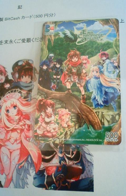 ガンホーからなんか封筒が届いてた何かなと思って開けたらBitCashカード500円分だったヨBitCashでトクにチャージキャンペーンてのが当選したらすぃ~あぁ、これは