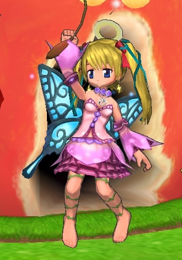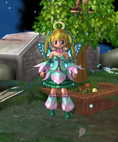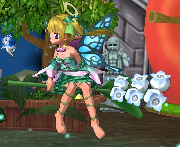 妖精のドレスを菖蒲色に染めてみた('▽'*)ブルーミングブルームや妖精の蔦との組み合わせを考えたら、若草色のままのほうがよかった気もする・・